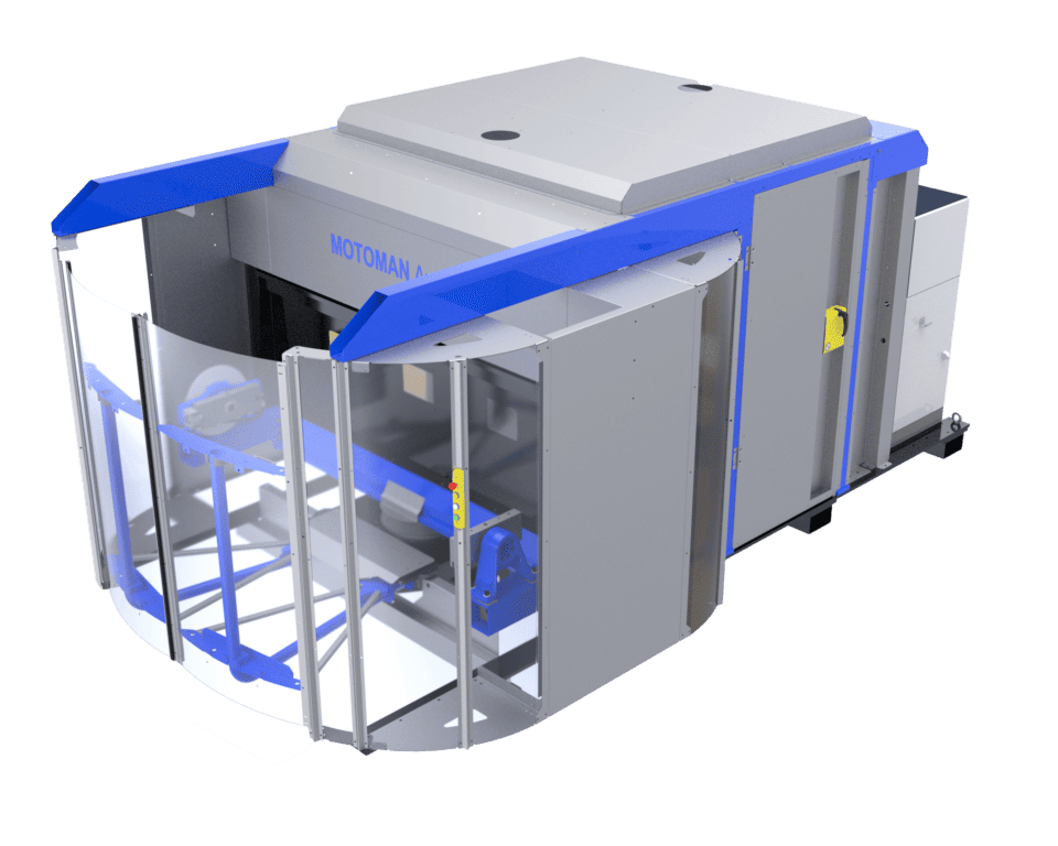 The turnkey robotic welding cell from Yaskawa is designed for best possible performance in small spaces. The cell has a separate working area for both the robot and the operator.