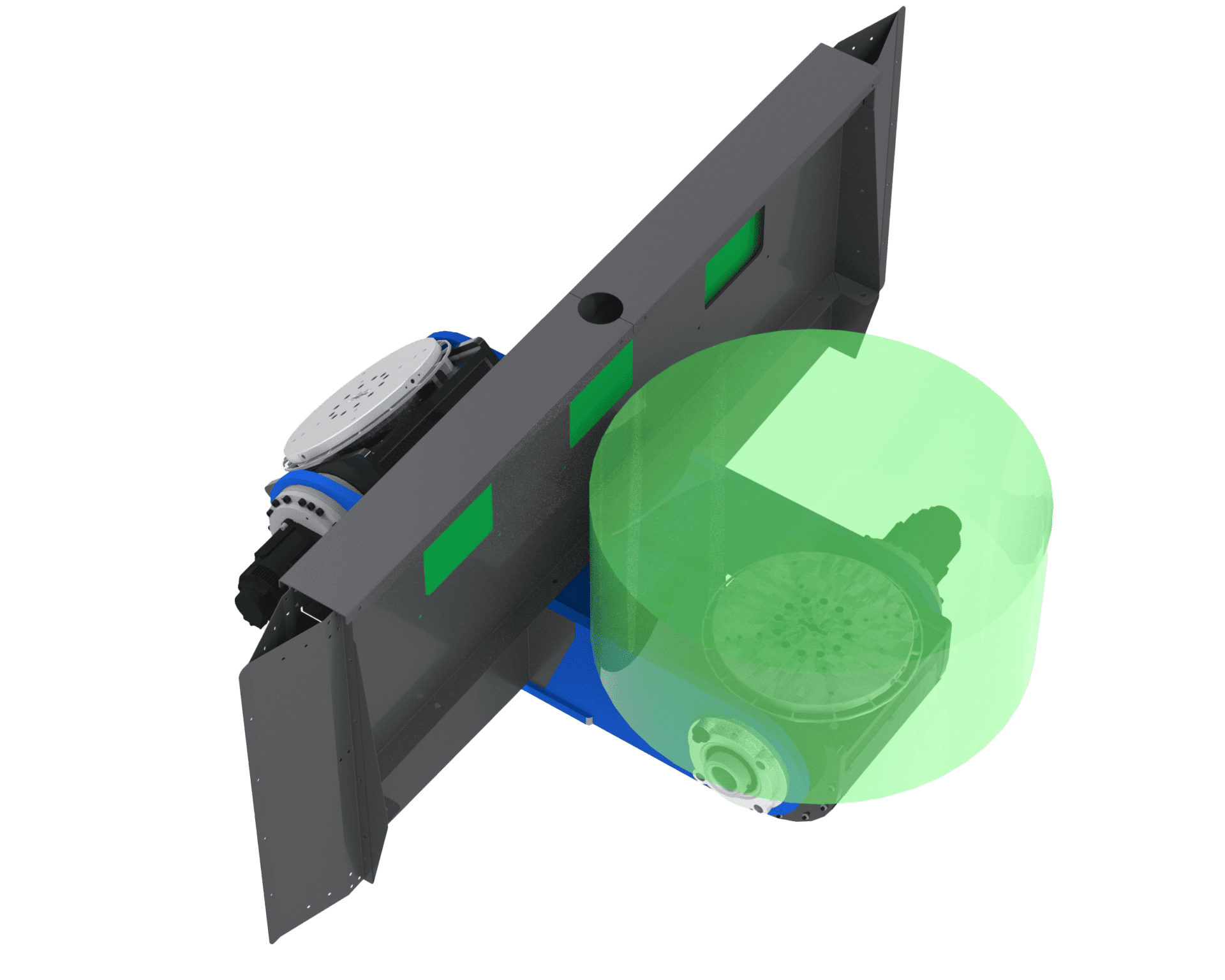 5-axis indexing manipulator. Can tilt and turn workpieces into any position, ensuring optimum welding position, even for complex workpieces.